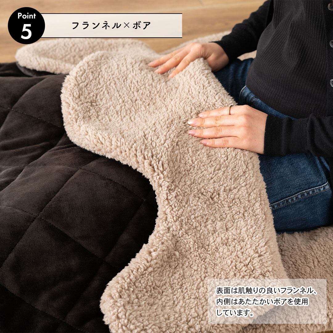 表面は肌触りの良いフランネル、内側は暖かいボアを使用。