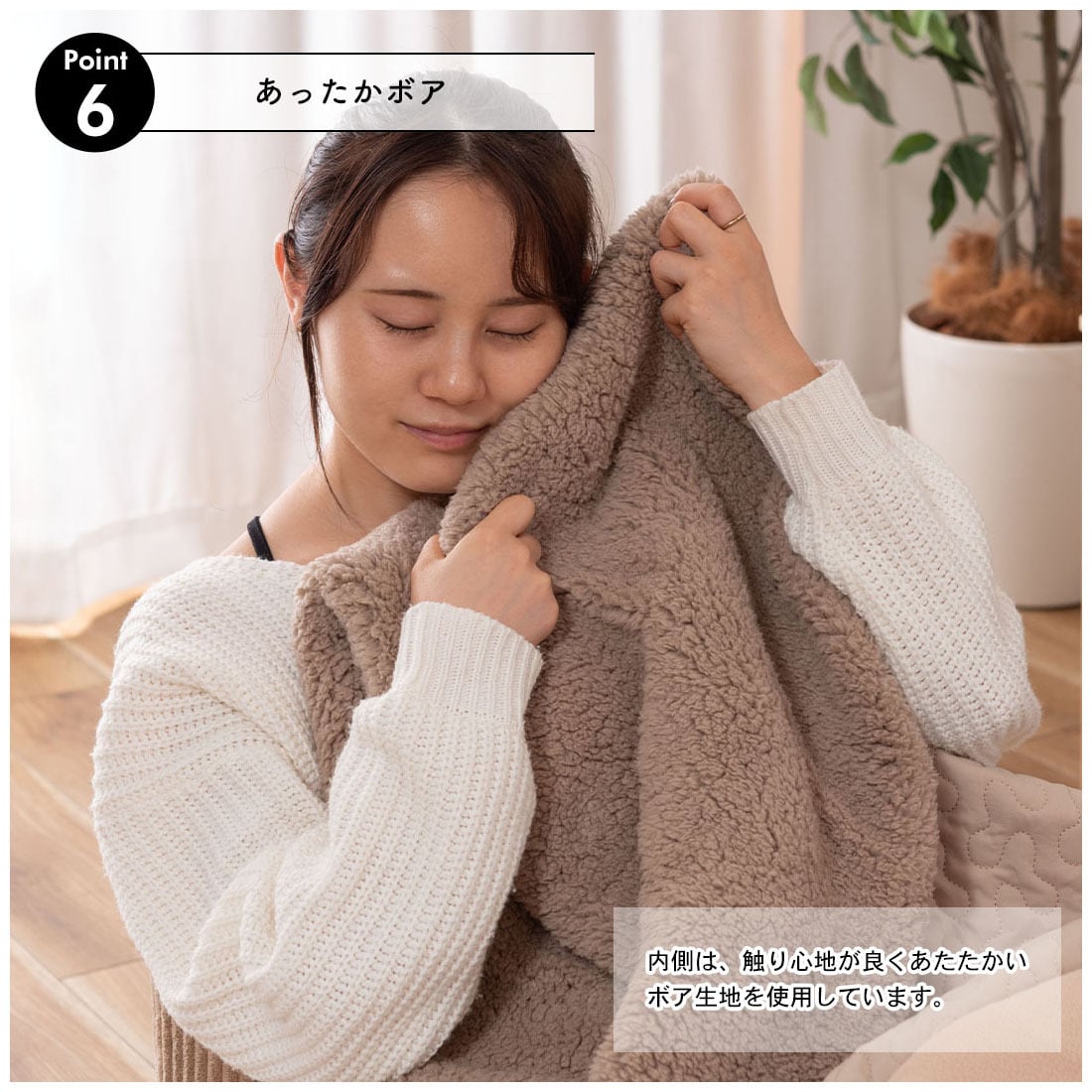 切れ込み部分から中に入れば、内側のボア生地が身体をあたたかく包み込んでくれるサンドクッション。