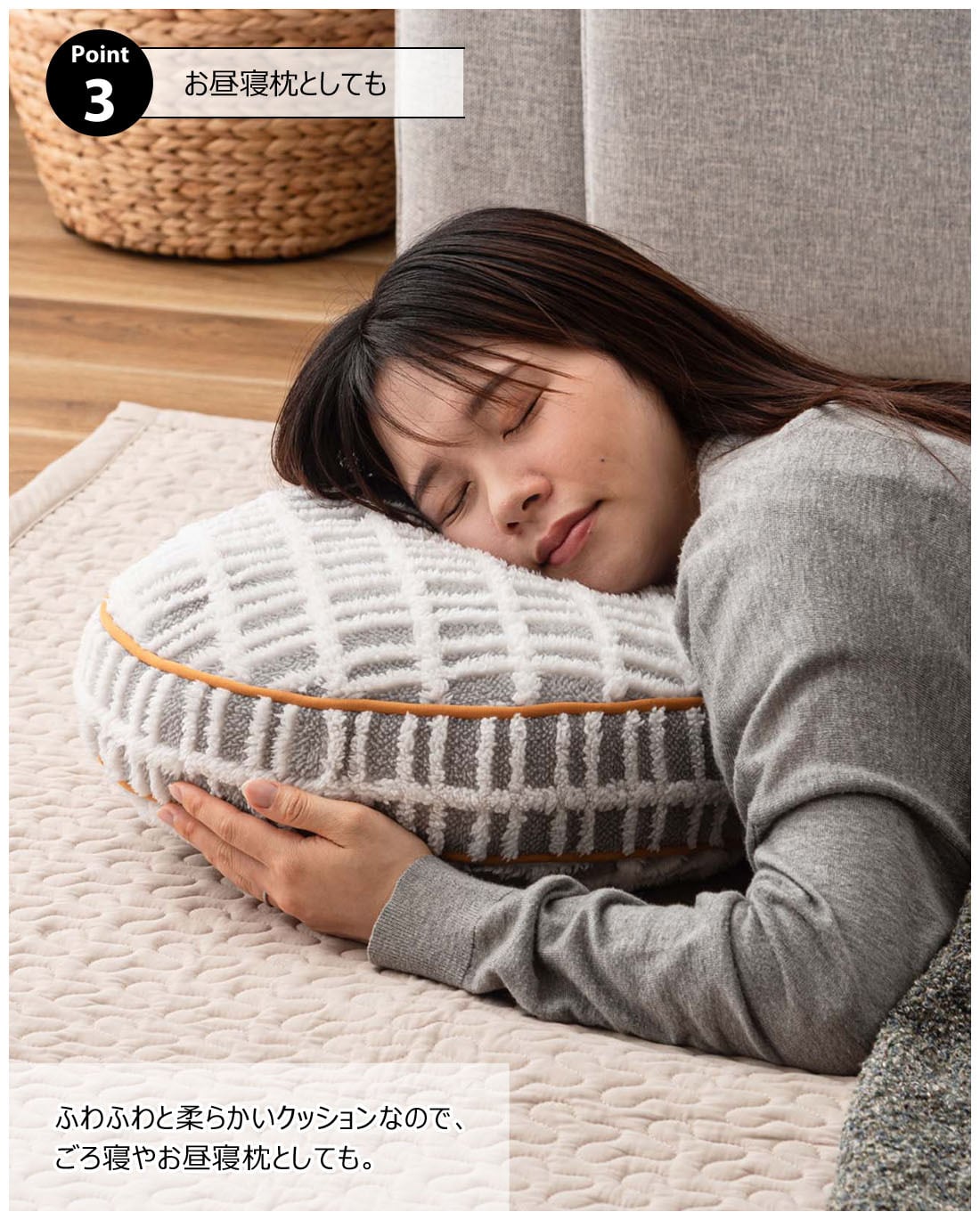 ふわふわと柔らかいクッションなので、ごろ寝やお昼寝枕としても。