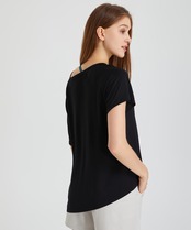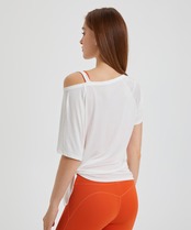 シンプルデザインでありながらもおしゃれな半袖ヨガウェアです。