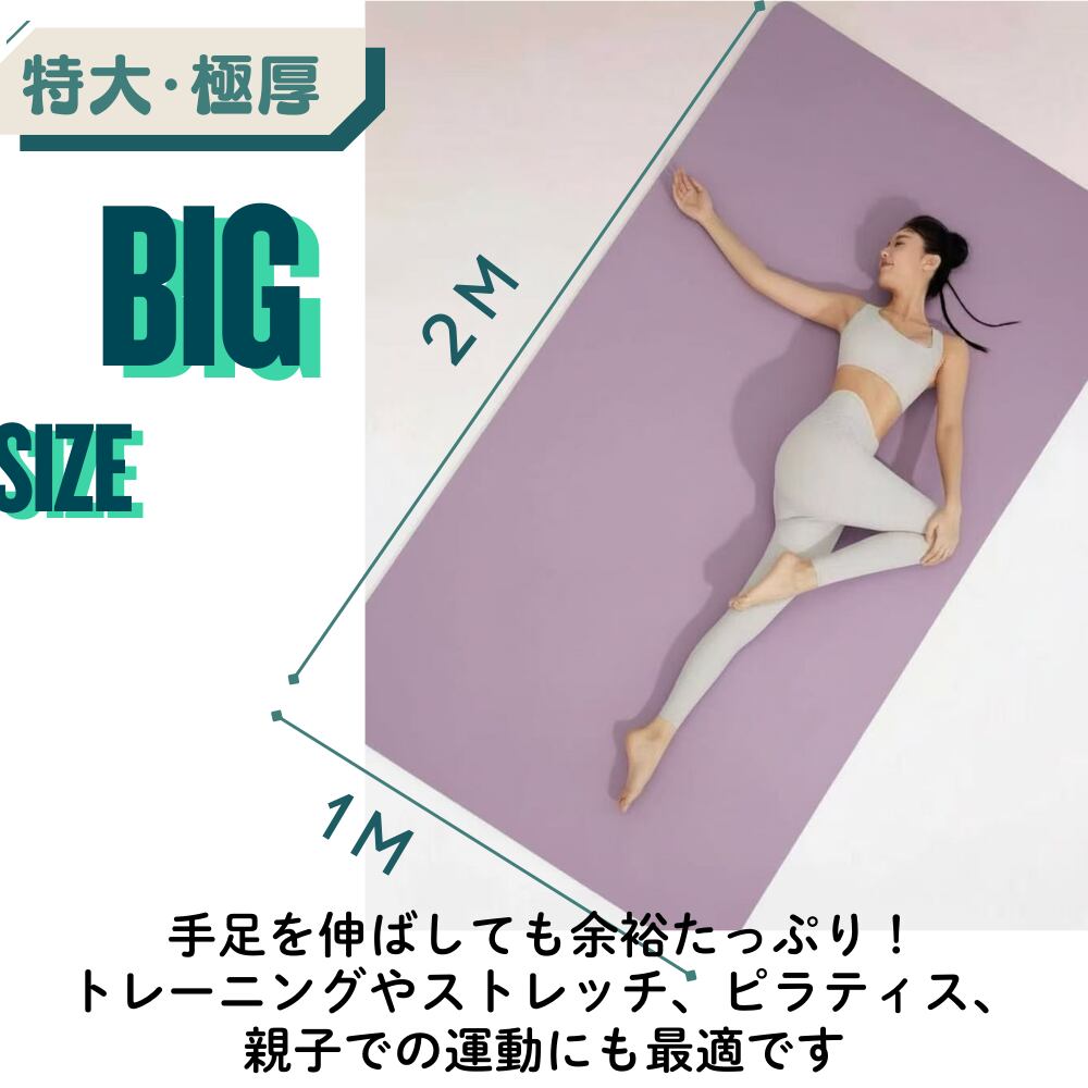 広くて極厚!一人で使うならダイナミックな動きでも手足がはみ出ないゆったりサイズ、ペアヨガや親子ヨガにもぴったりです。