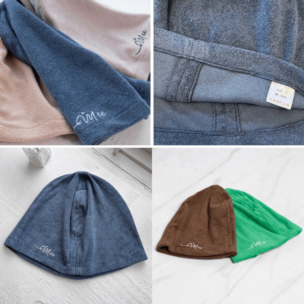 Meeのサウナハットはかなり大きめサイズ設計しているので、ゆったり深くかぶれて、自分のサウナに集中できる優れものアイテムです。