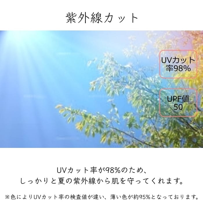 ・ UVカット率98%、大事な肌を紫外線から守ってくれる!