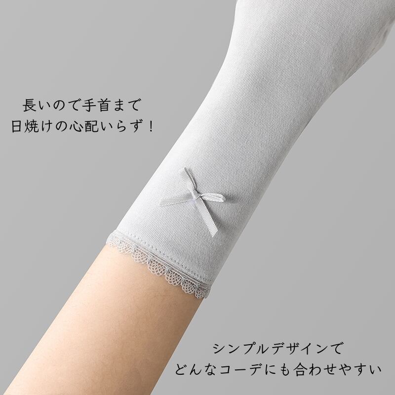 手首の長いロングタイプのため、しっかり手首の上まで広範囲に肌を守ってくれます。