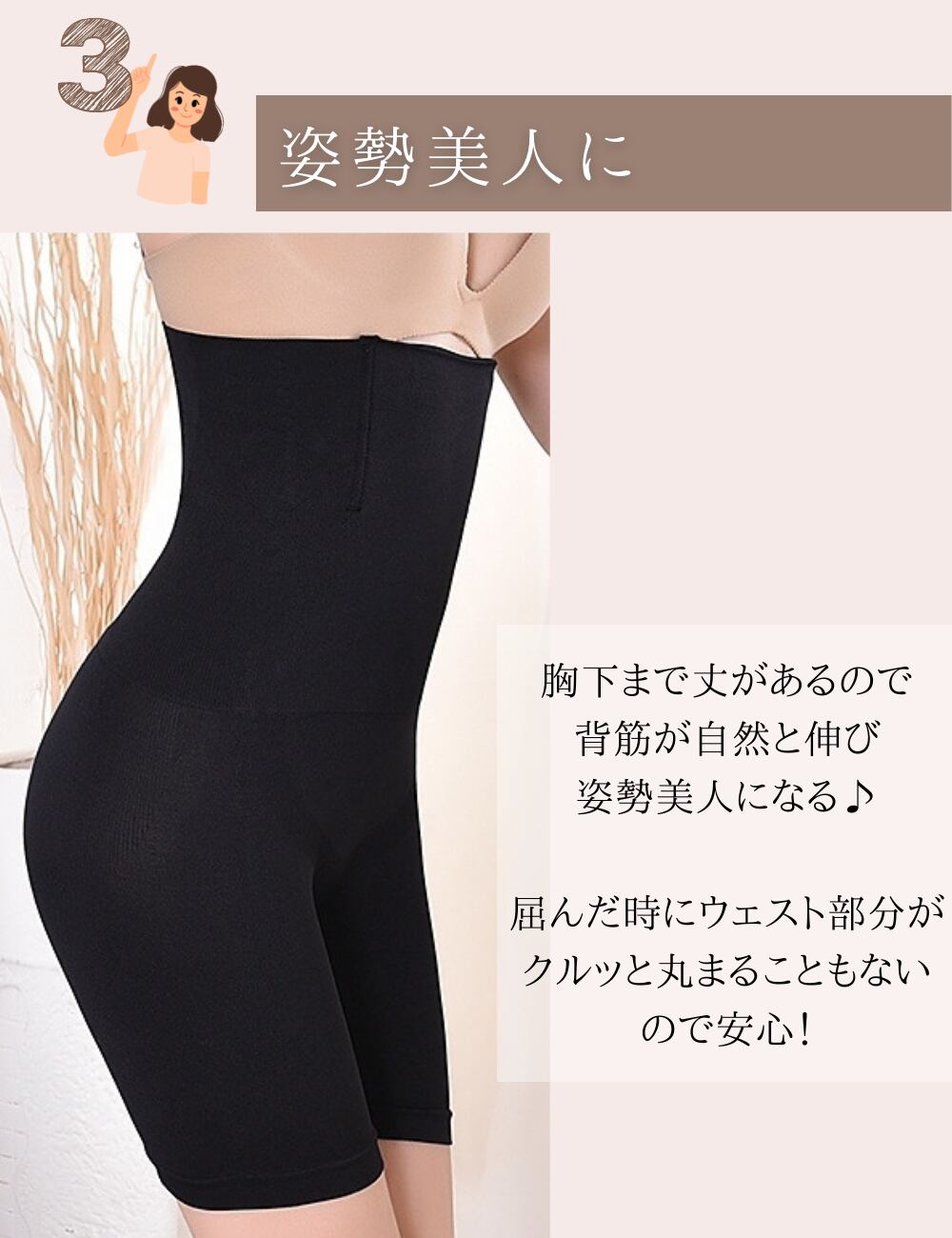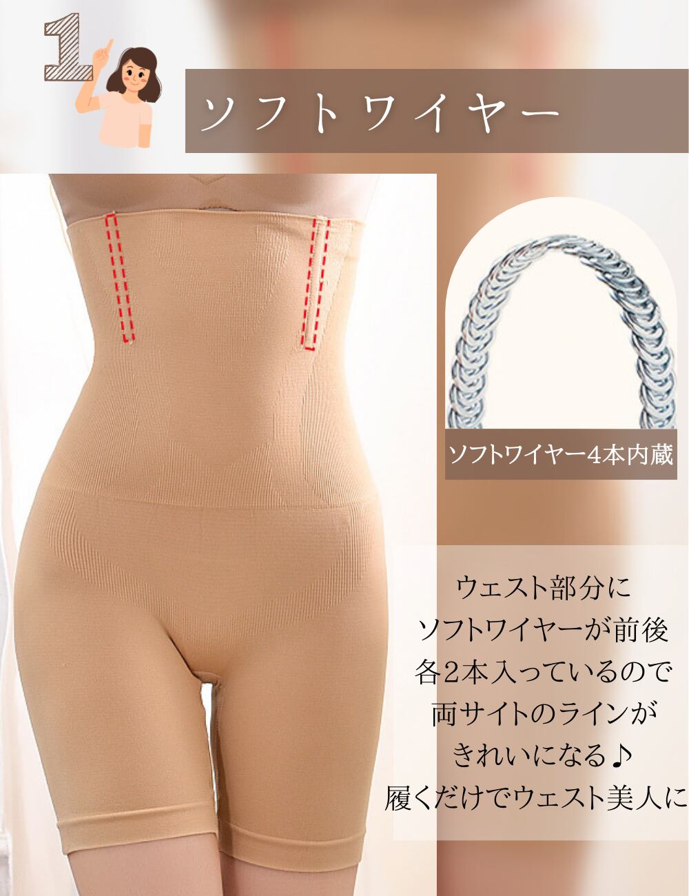 ハイウェストでソフトワイヤーが入っているので、猫背矯正やくびれ作りに役立ちます。