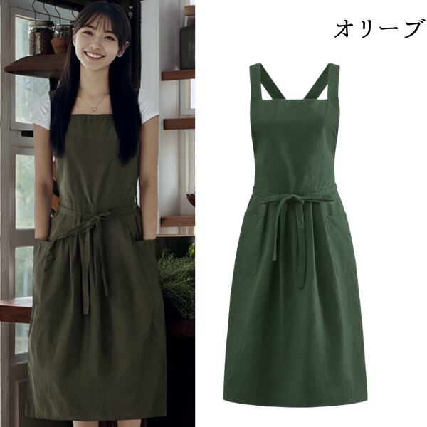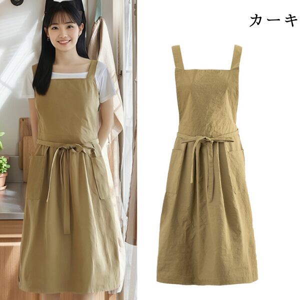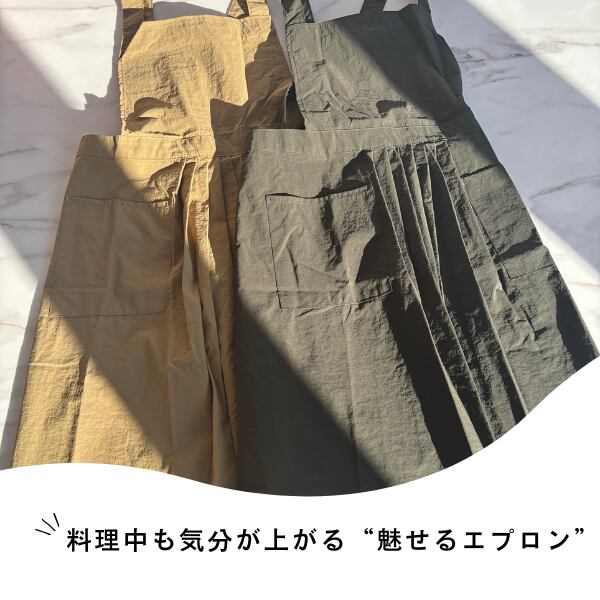 動くたびに軽やかなシルエットが生まれ、ただのエプロンではなく「ワンピースのような」楽しさがあります。