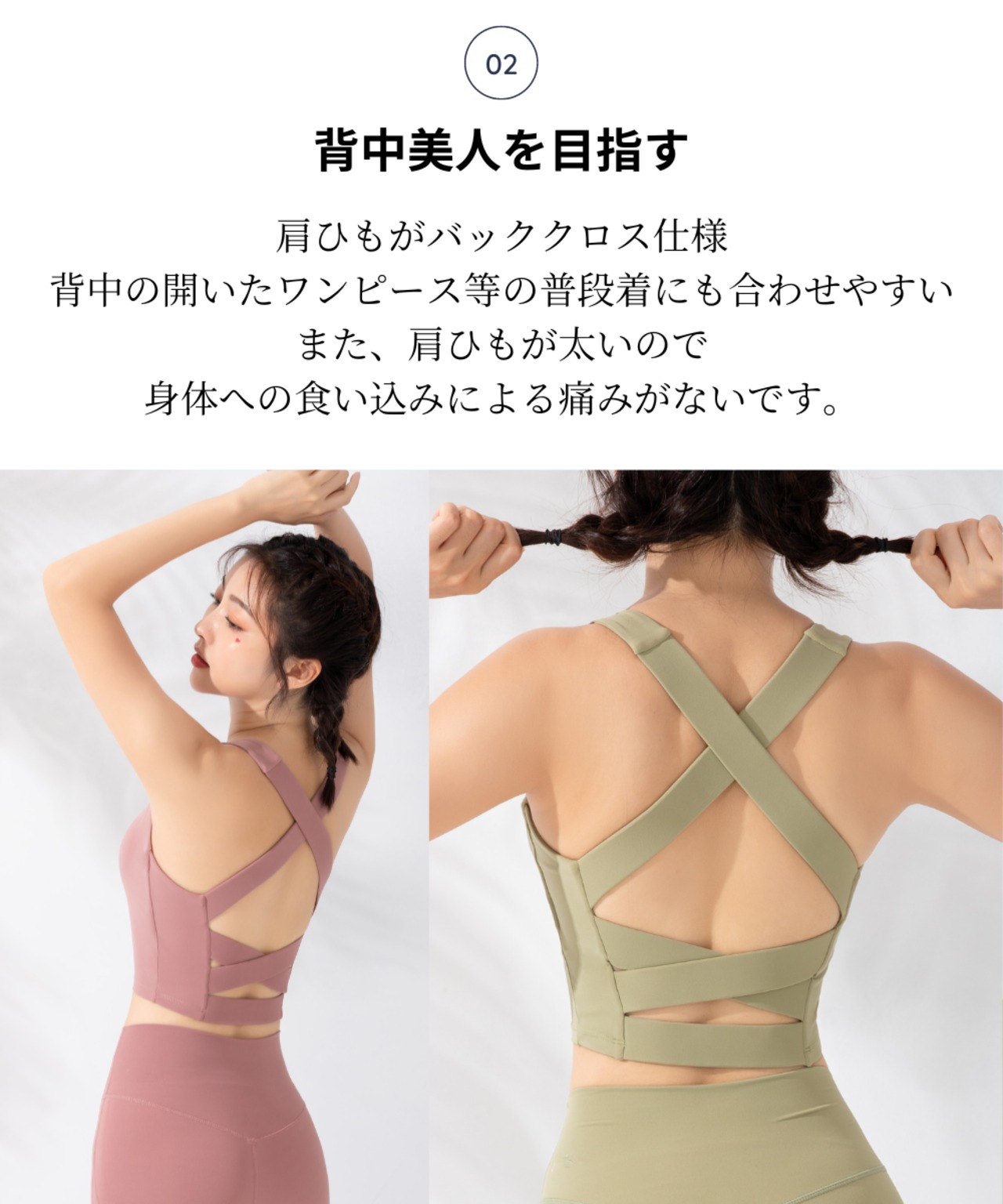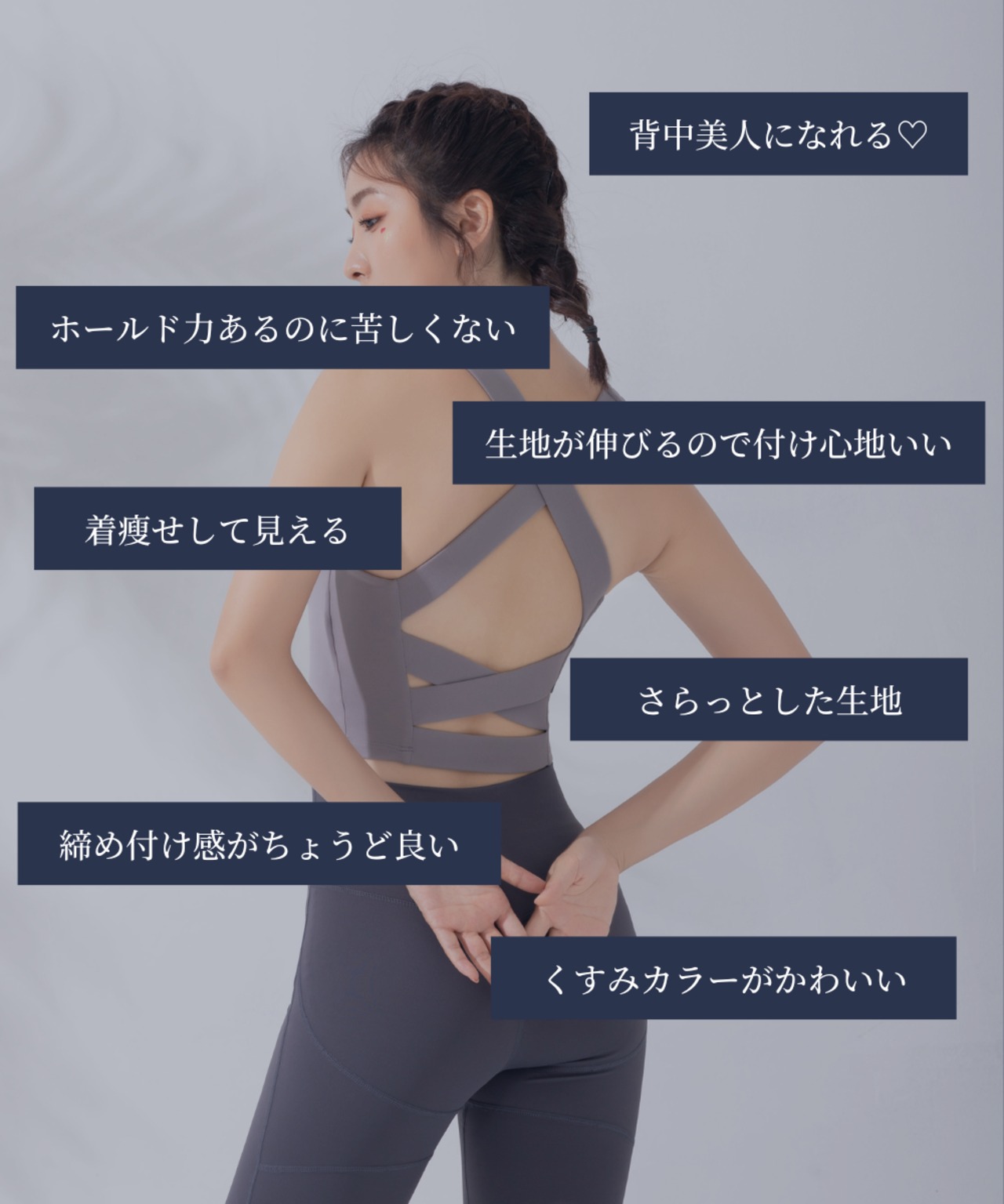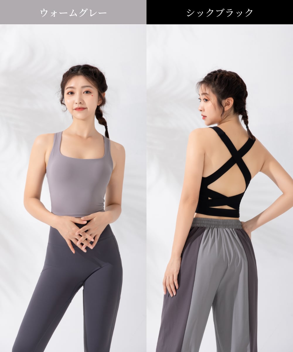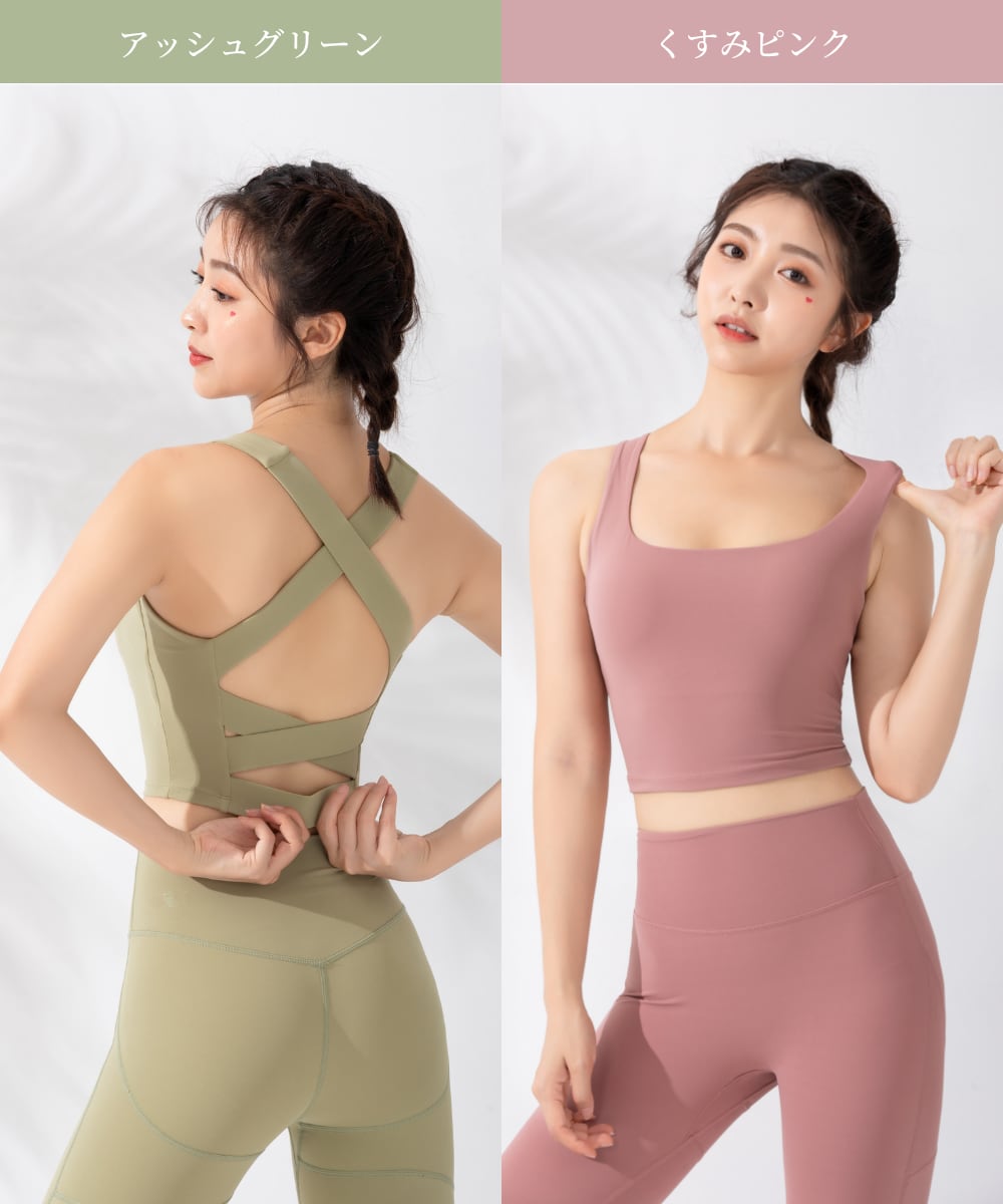 バッククロスデザインでおしゃれなヨガブラトップです。
