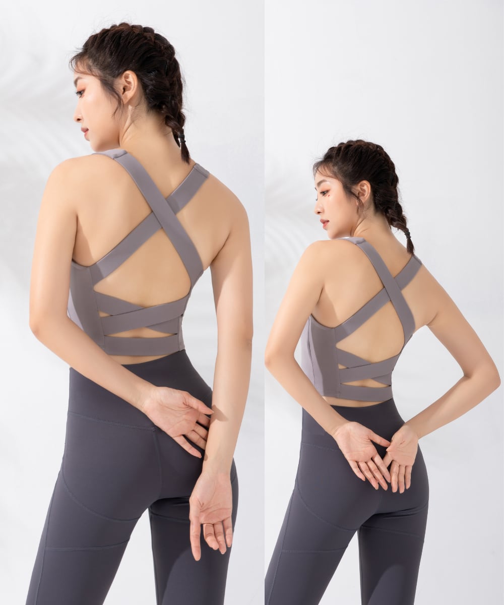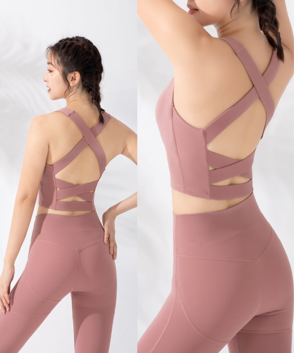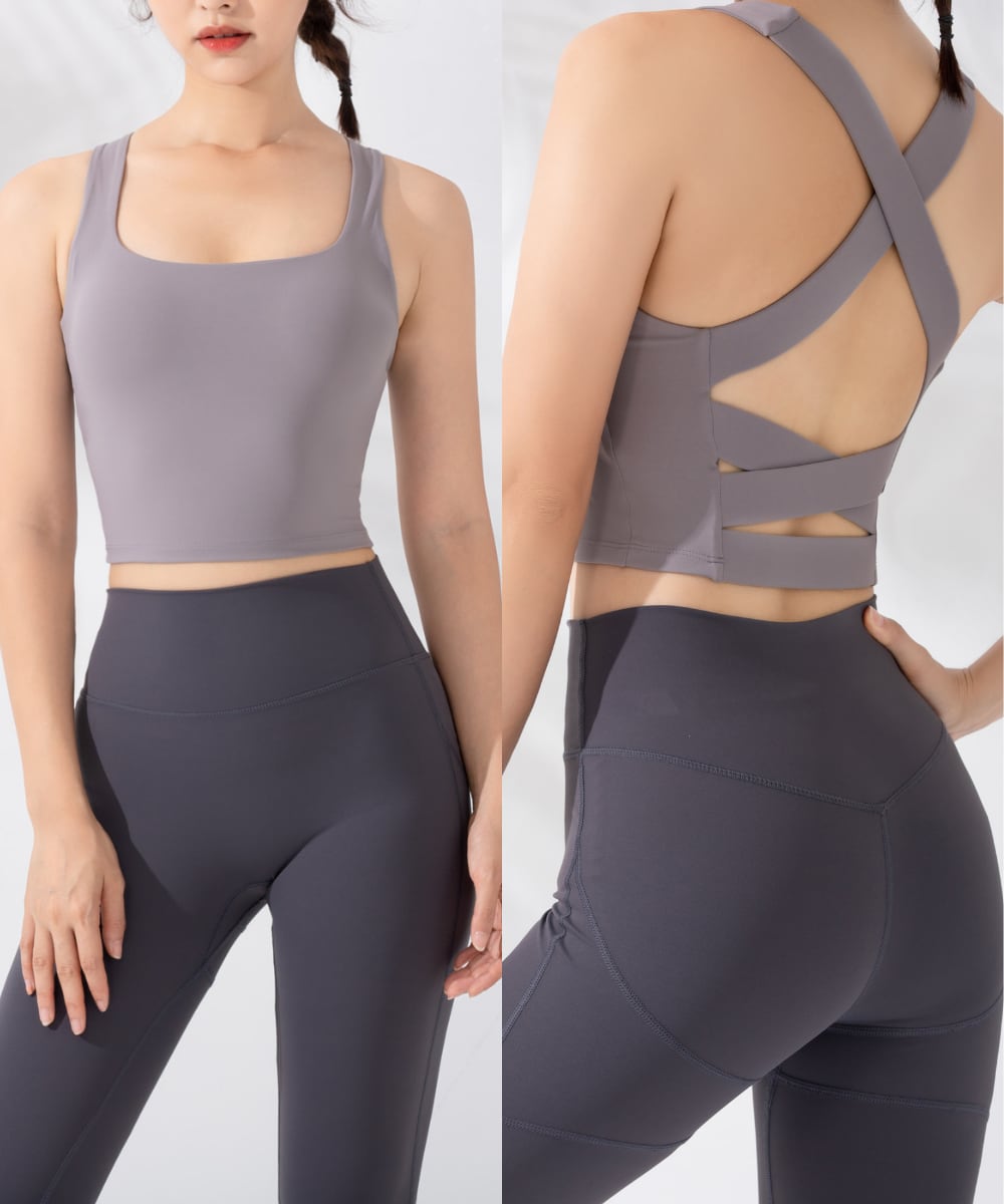 バッククロスデザインでおしゃれなヨガブラトップです。