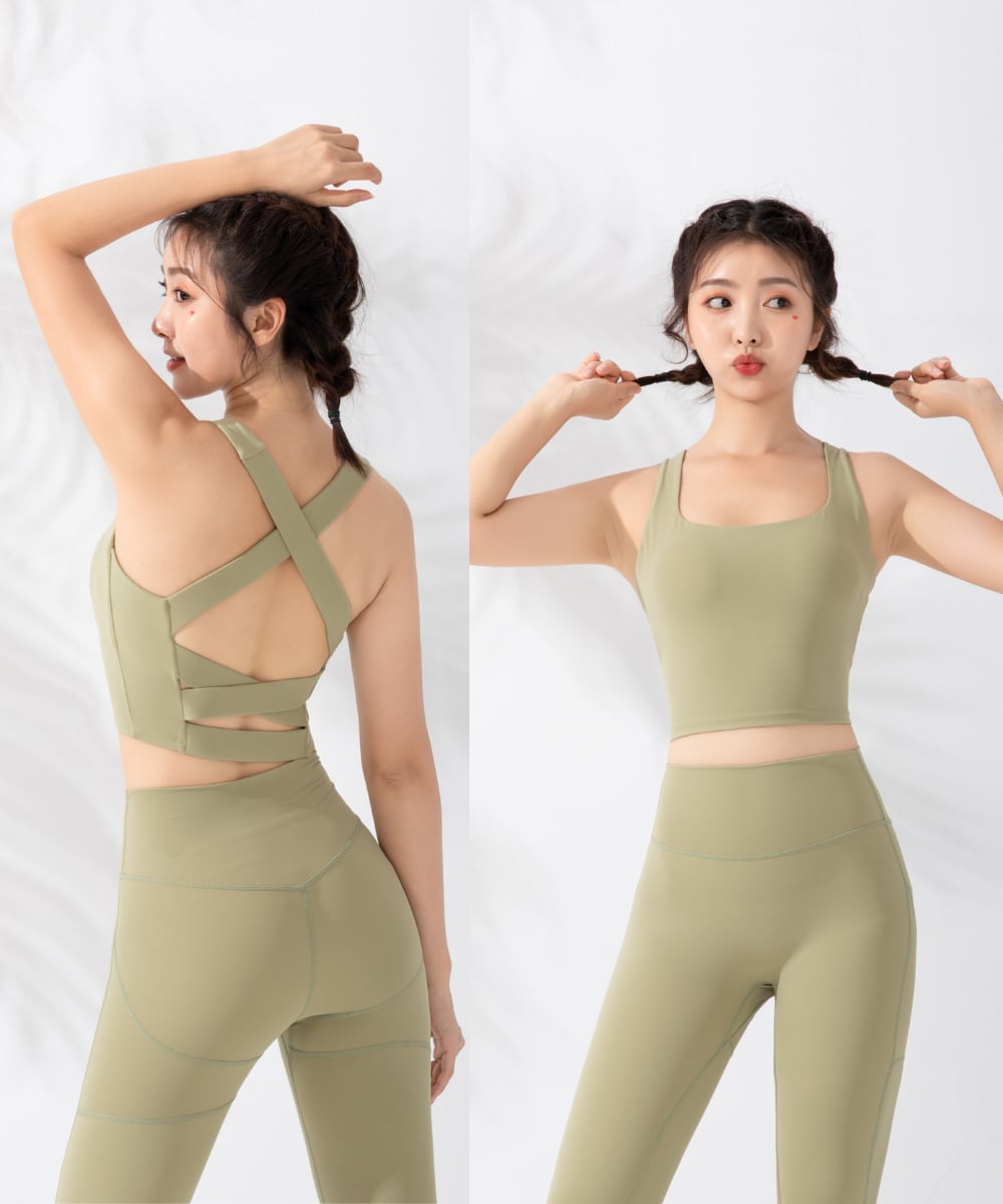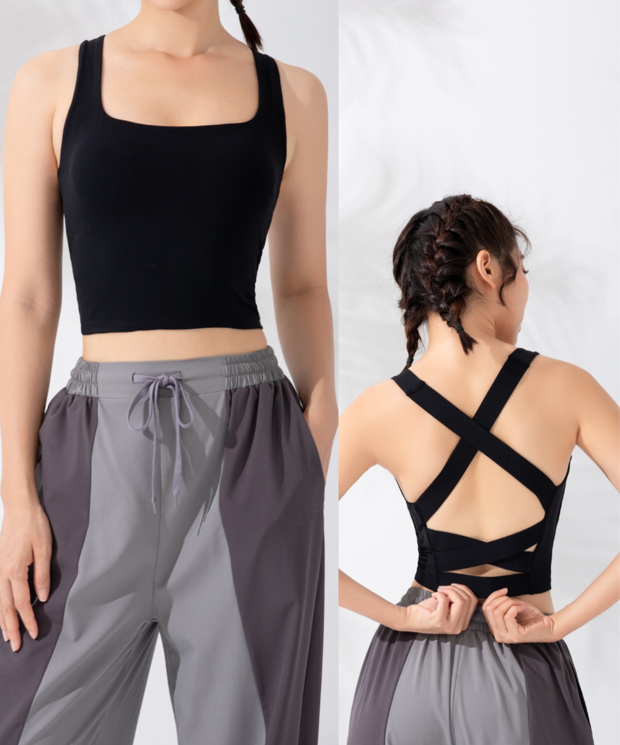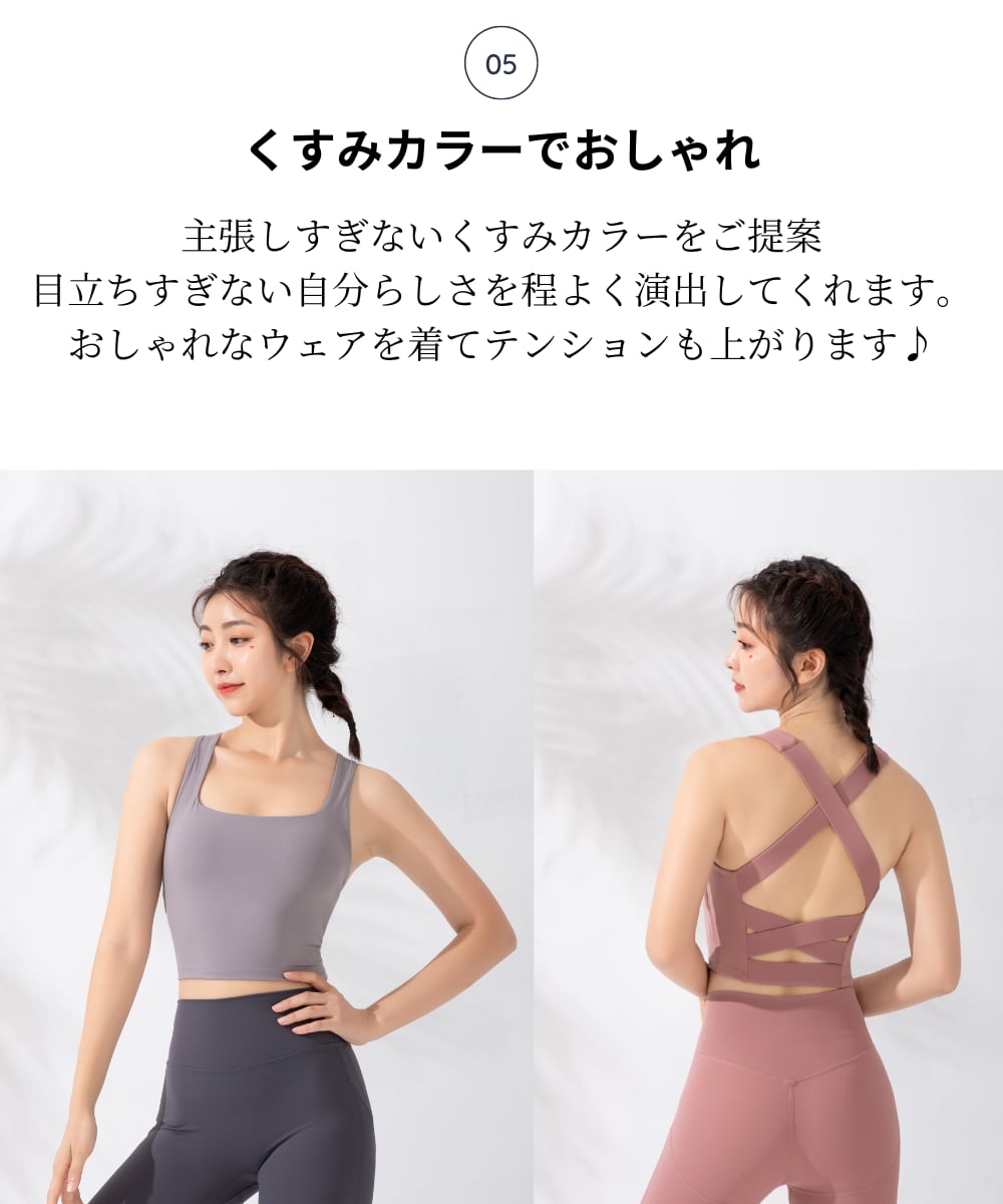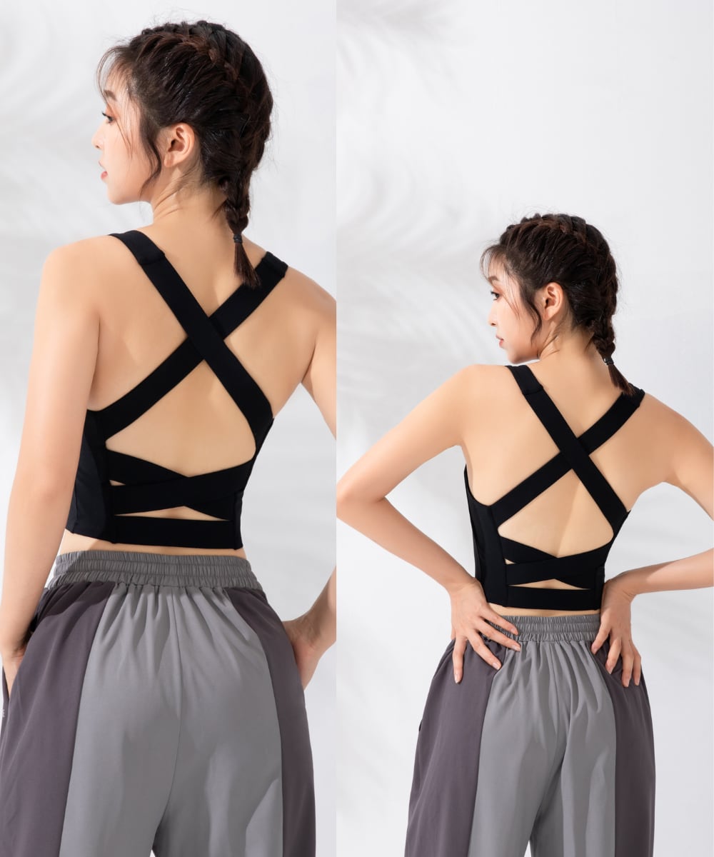 バッククロスデザインでおしゃれなヨガブラトップです。