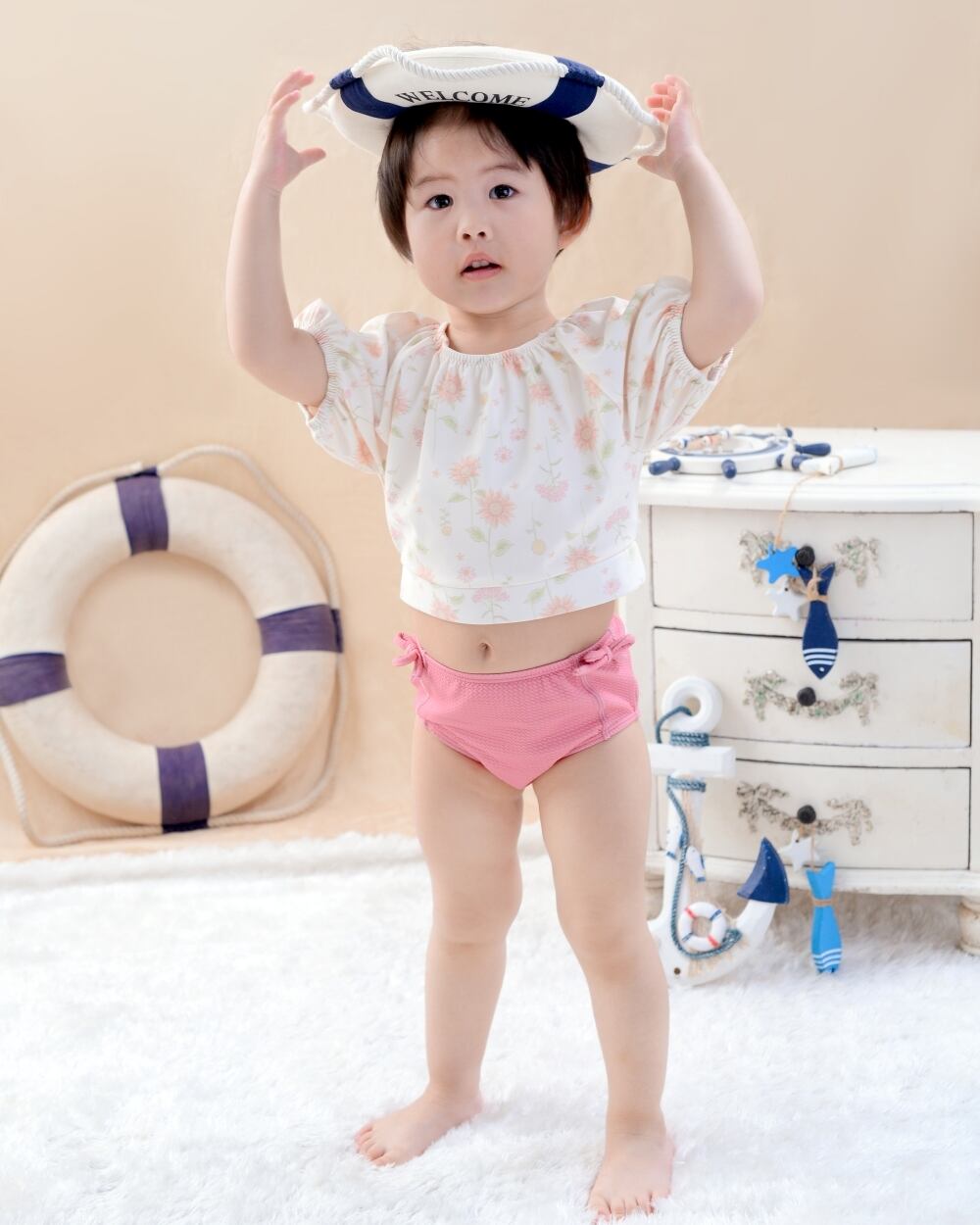 さらに、パステルカラーのひまわり花柄が、夏の水遊びやプール、海でおしゃれに輝かせてくれます。