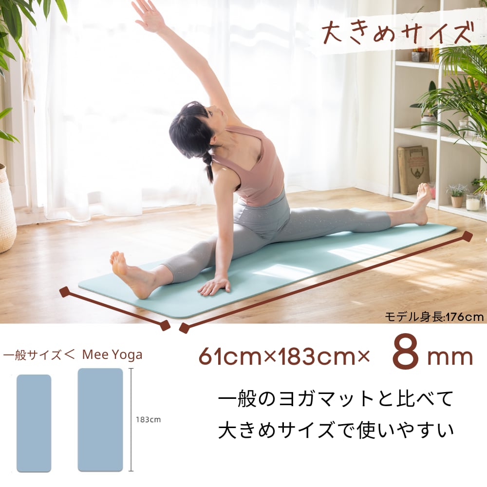 ダイエットや筋力トレーニング、リラックス効果を得るためにヨガを始めてみませんか?Mee Yogaのヨガマットがあなたのワークアウトをサポートします。男女問わず、幅広い方にご利用いただけます。ぜひ、あなたの健康と美しさのために、Mee Yogaのヨガマットをお試しください。