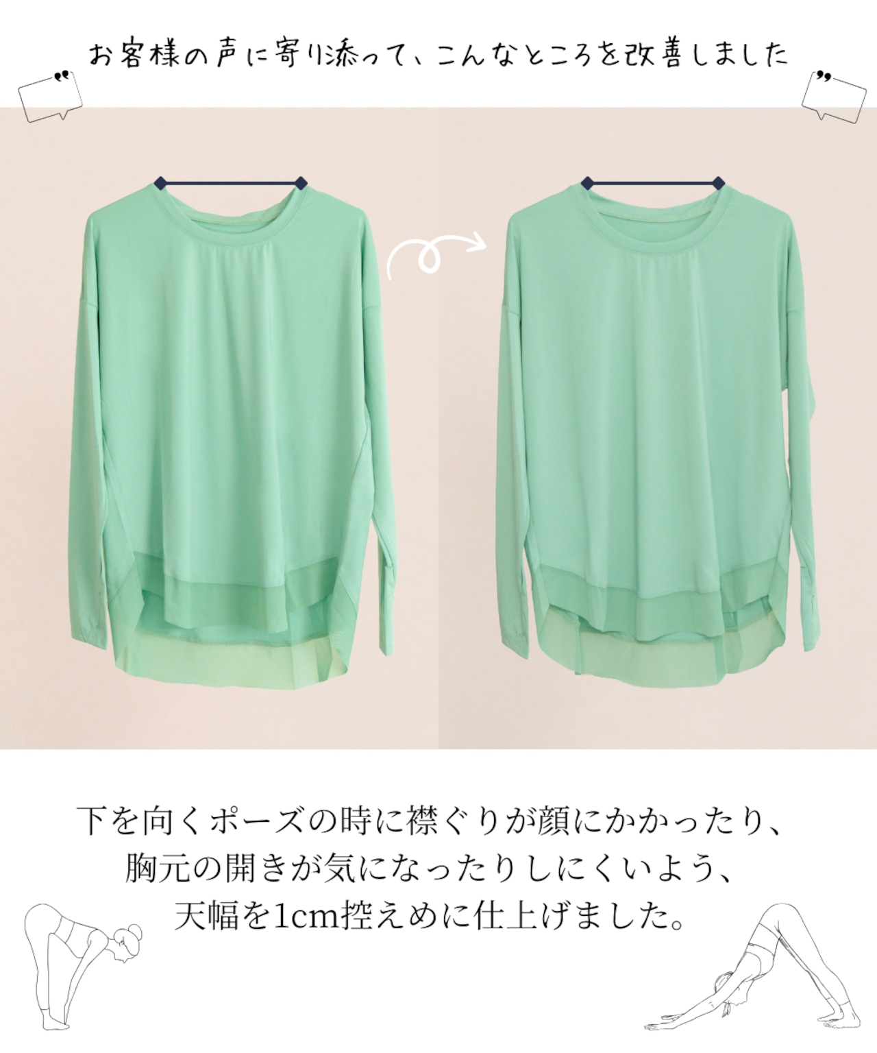 柔らかな肌触りと快適な着心地が特徴のヨガウェアトップス。